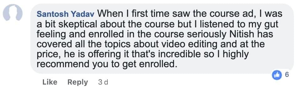 "I’m enrolled in 3 other video editing courses besides this course and I want to thank you for providing such valuable videos that I have never seen before. I’ve learned more from your course than all those 3 courses combined." - Manish K.