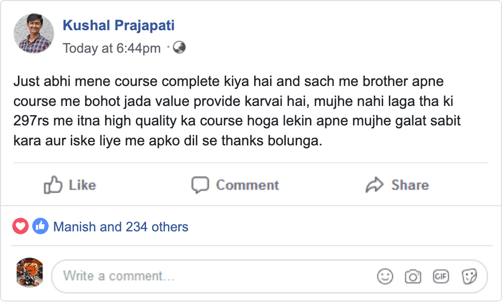 Within 7 days if you are not completely SATISFIED and ENLIGHTENED by the Ultimate Edit 2.0 Course, then I'll refund your ₹297. That's how confident I am!