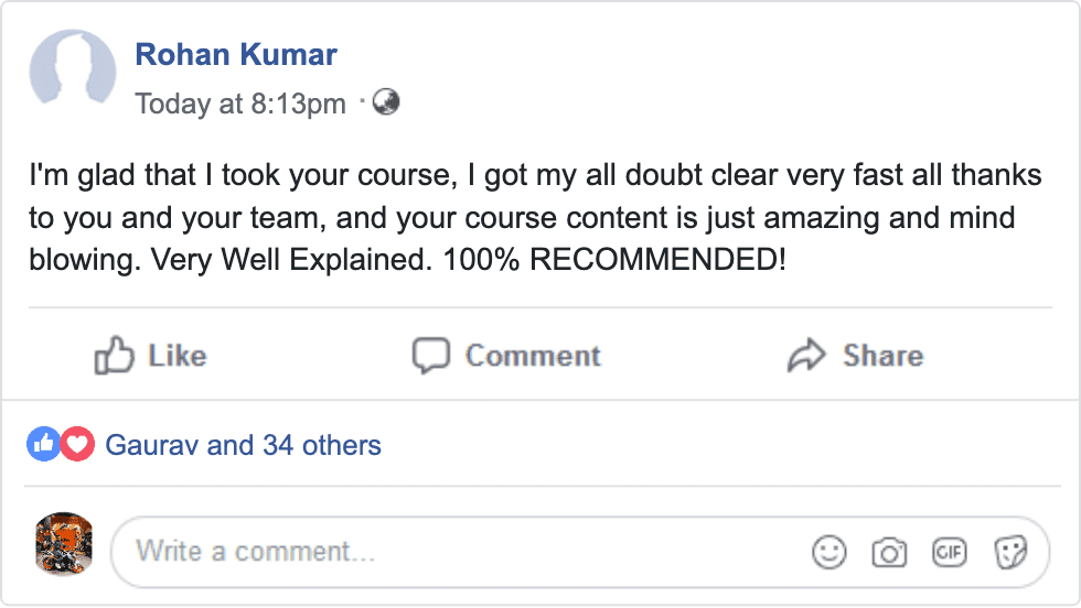 "I'm taking this course, and it's worth 10 times what he is charging for it. Great value and excellent presentation." - Ravi B.
